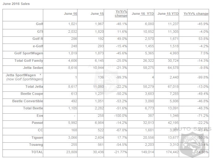 Volkswagen of America, Inc. (VWoA) today reported sales of 23,809 units delivered in June 2016. The Tiguan produced the best June results on record for the vehicle with 3,066 vehicles delivered, a 17.7 percent increase over June 2015.