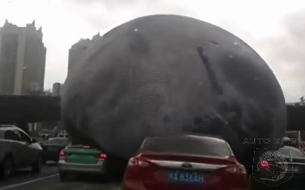 Caught on camera, the fake moon appears to roll over anything in its past. It does. But because it is just a balloon, it appears to not have injured anyone or caused any damage. It just blew over and past everything in its way.