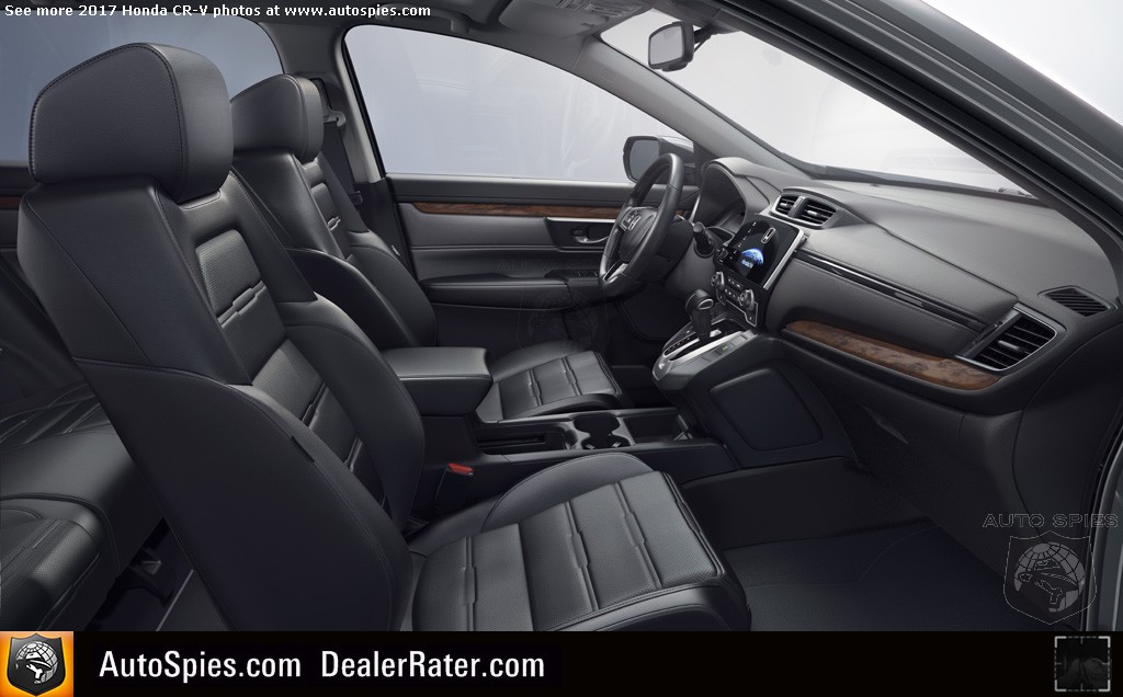 The 2017 CR-V also raises the bar for interior refinement, utility and premium features in the compact SUV class. The more spacious cabin, with top-in-class interior space and the best rear seat legroom in its class, features upgraded materials throughout, including a new soft-touch instrument panel and more intricately stitched seats. A color TFT driver information interface (DII) center meter display adds to the handsome new design aesthetic.