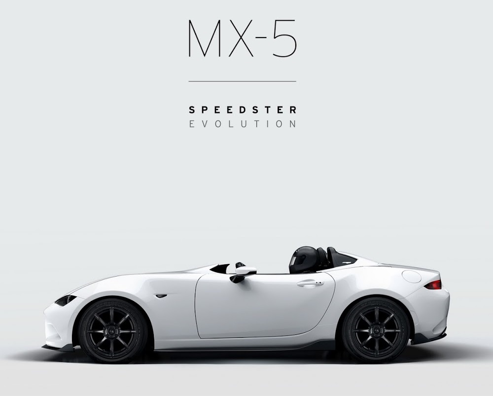 The first one is called the Speedster Evolution and -you guessed it- it’s an evolved form of last year’s Speedster concept. Finished in White Ether, the Speedster Evolution takes the lightweight concept even further with more than 100lbs (over 45kg) removed from last year’s show car. Tipping the scales at just under 2,000lbs, the new MX-5 Speedster Evolution is around 350lbs (160kg) lighter than a stock Miata with a soft top.