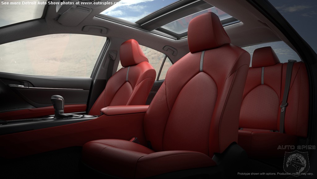 Camry will again be available in four grades: LE, XLE, SE and XSE. The new Camry’s “Sport” SE and XSE grades wear a noticeably different body style than the entry level LE and premium XLE grades, highlighted by a sculpted rocker panel, new 19-inch black machined-finish alloy wheels (XSE only) a subtle rear spoiler lip, aggressive front bumper, and rear bumper with an integrated lower diffuser. The face is much more distinctive with large side intakes flanking the lower bumper’s unique “Catamaran” accents, a high and slim upper intake encompassing the