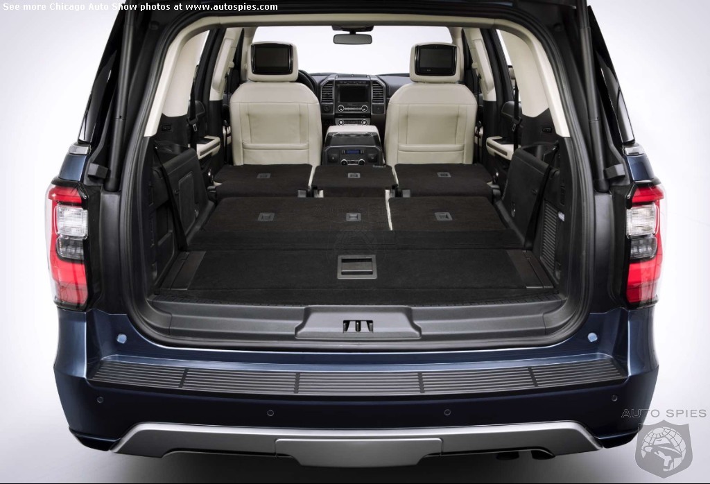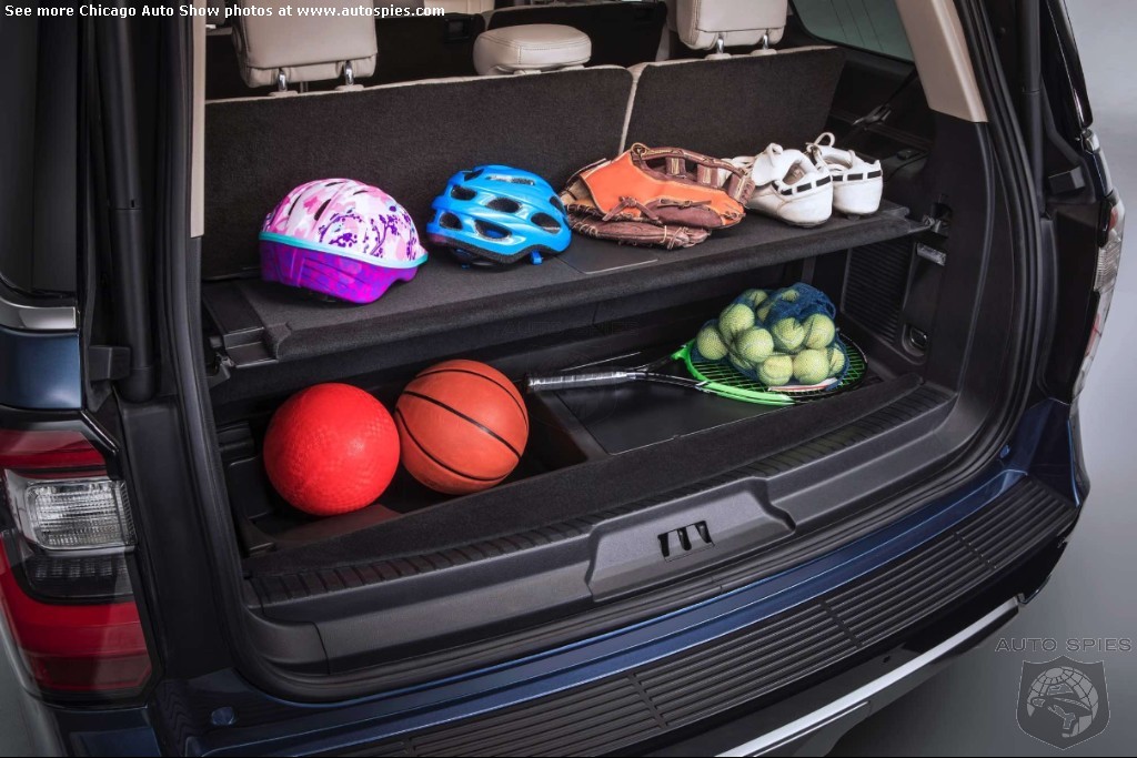 - Advanced cargo manager with an adjustable shelf behind the third row lets owners create a storage space customized to whatever they’re hauling; even when parked on a hill, cargo won’t roll out the back of Expedition when the liftgate is opened