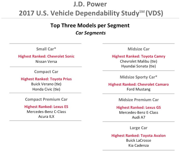 The 2017 U.S. Vehicle Dependability Study is based on responses from 35,186 original owners of 2014 model-year vehicles after three years of ownership. The study was fielded from October through December 2016.