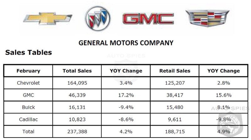 - Chevrolet had its best February retail sales since 2007 and its best February total sales since 2008. Crossovers deliveries set a February record for the brand.