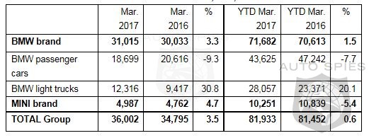 In total, the BMW Group in the U.S. (BMW and MINI combined) reported March sales of 36,002 vehicles, an increase of 3.5 percent from the 34,795 vehicles sold in the same month a year ago. Year-to-date, BMW Group sales are up 0.6 percent on sales of 81,933 vehicles in the first three months of 2017 compared to 81,452 in the same period in 2016.