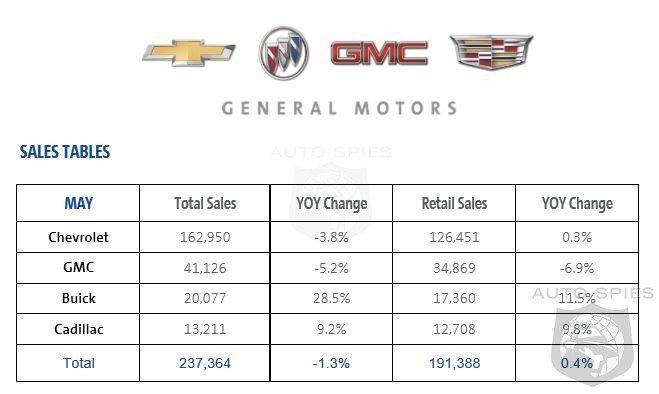 GM’s May total sales were 237,364 vehicles, down about 1 percent from last year.