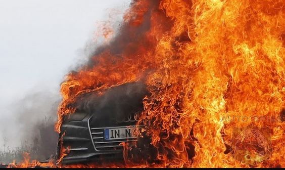 Apparently this Audi A7 mule suffered from some sort of catastrophic failure while pulling a dead weight trailer up the Alps and flames started shooting from between the hood and the windshield.