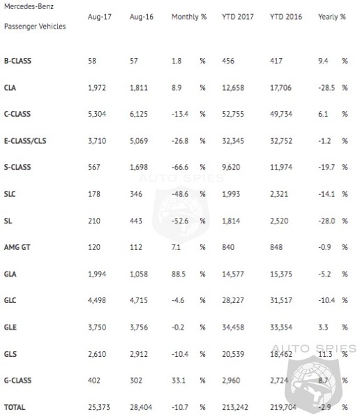 Mercedes-Benz USA (MBUSA) today reported August sales of 25,373 units, compared to 28,404 vehicles sold during the same month last year. On a year-to-date basis, Mercedes-Benz retails totaled 213,242 units, down 2.9% from the previous year. Mercedes-Benz Vans reported best-ever August sales with 3,581 units and smart reported 229 units, bringing the MBUSA grand total to 29,183 vehicles for the month. “It became apparent during the previous months, that the highly volatile U.S. automotive market is affecting the sales figures of Mercedes-Benz. Nevertheless, we see an ongoing demand for our SUV lineup. The limited availability of several models impacted our monthly totals in August,” said Dietmar Exler, president and CEO of MBUSA. “Presently, our thoughts and concerns lie with our dealer partners, employees and their families in Texas, who are experiencing many challenges at the moment.”