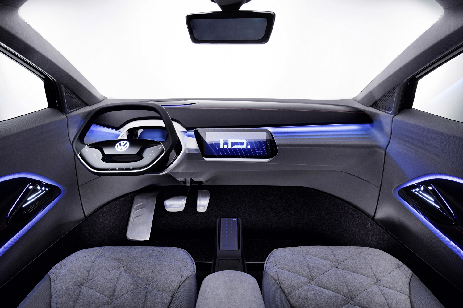 As with the other Volkswagen I.D. concept vehicles, the I.D. CROZZ features the I.D. Pilot self-driving system, which Volkswagen plans to deploy in 2025. The I.D. Pilot relies on four laser scanners that pop up from the roof, as well as ultrasonic and radar sensors, side area view cameras and a front camera. The system activates either by voice control—“Hello I.D., please activate Pilot mode”—or by intentionally touching the Volkswagen logo on the steering wheel and holding it; after three seconds, the wheel retracts for self-driving mode. In manual driving mode, the ambient lighting in the I.D. CROZZ is light blue, while in automated I.D. Pilot mode the lighting switches to red.