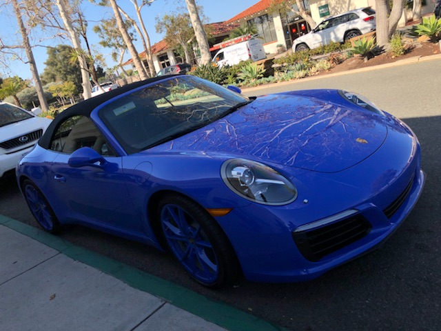 Agent 001 was running errands around town this week and it's not uncommon for him to run across some interesting wheels. It is SoCal, after all. But this one stumped the both of us. Well, it stumped me, at least. Painted a rare Porsche color, this new 991.2 911 Carrera Cabriolet certainly stands out from the crowd. Frankly, I am not sure if it's a good or bad thing.What I can tell you, however, is that this owner is committed and even went as far as to ensure the wheels were painted to match its not so common exterior color. After some digging, 001 found the color. It definitely a blue but note there's a bit of purple in there as well. That said, can you name this Porsche hue?
