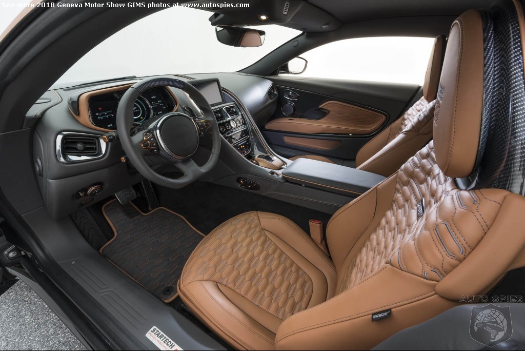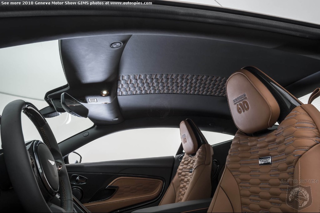 In addition, the exclusive appearance is characterized by STARTECH Monostar M 21-inch wheels, which were tailor-made for the Aston Martin. The design features five pairs of spokes combined with a hub cover that gives the wheel the appearance of a center lock rim as used in motor racing. The stylized center lock nut comes with a choice of black, silver, red or blue electroplating. On this show car, copper-colored pinstripes adorn five of the ten spokes of the high-gloss black wheels. At the front, size 9Jx21 wheels with 275/35 ZR 21 Pirelli P Zero high-performance tires make full use of the available space under the wheel arches. At the back, size 325/25 ZR 21 tires mounted on rims 11.5 inches wide do their best to provide maximum traction.