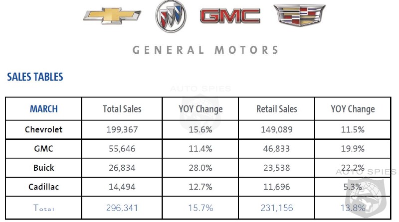 General Motors (NYSE: GM) today reported 296,341 car, crossover and truck deliveries in the United States in March. Sales were up 16 percent year over year, driven by Buick’s best March since 2004, Chevrolet’s best March since 2007 and Cadillac’s best March since 2014. It was GMC’s best March in the brand’s history. GM’s retail sales in March were up 14 percent year over year, and the company’s estimated retail market share was 17.7 percent – the highest since 2009 – driven by a 0.7 percentage point gain by Chevrolet. Chevrolet was the industry’s fastest-growing full-line brand.