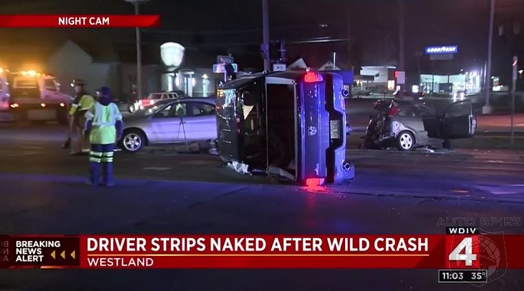 A wild crash involving at least five vehicles in Westlake ended Tuesday with a man getting out of his car and taking off his clothes, officials said