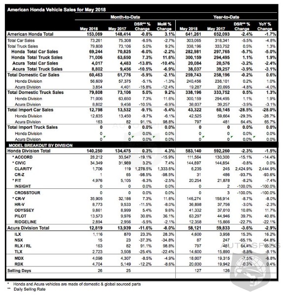 - Acura light truck sales remained strong with RDX topping 4,700 in May and MDX passing the 4,000 mark.