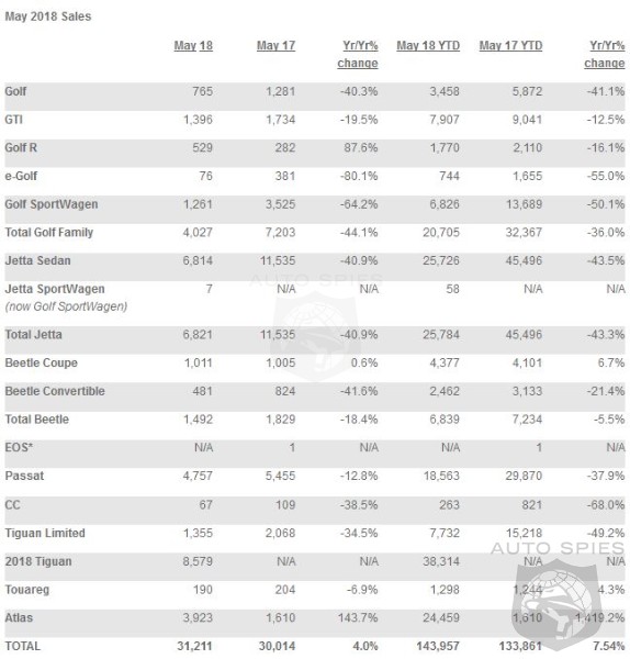 Volkswagen of America, Inc. (VWoA) today reported sales of 31,211 units delivered in May 2018, an increase of 4 percent over May 2017. With 143,957 units delivered year-to-date in 2018, the company is reporting a 7.5 percent increase in year-over-year sales. “The all-new 2019 Jetta, which launched in the middle of May, has been well received. We’re excited to build momentum with this vehicle and look forward to having the all-new Jetta, with its bold design and innovative features, as part of our strong offering of vehicles for the summer months ahead,” said Derrick Hatami, Executive Vice President of Sales, Marketing and After Sales for Volkswagen of America. “We had our best month to date for the 2018 Tiguan as we continue to see encouraging numbers for our growing lineup of family-friendly SUVS.”