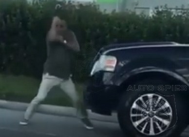 A Florida man was seen squaring up to a moving SUV before punching it and attempting the bust the grill with his knees in a bizarre road rage attack on Tuesday evening.