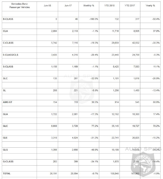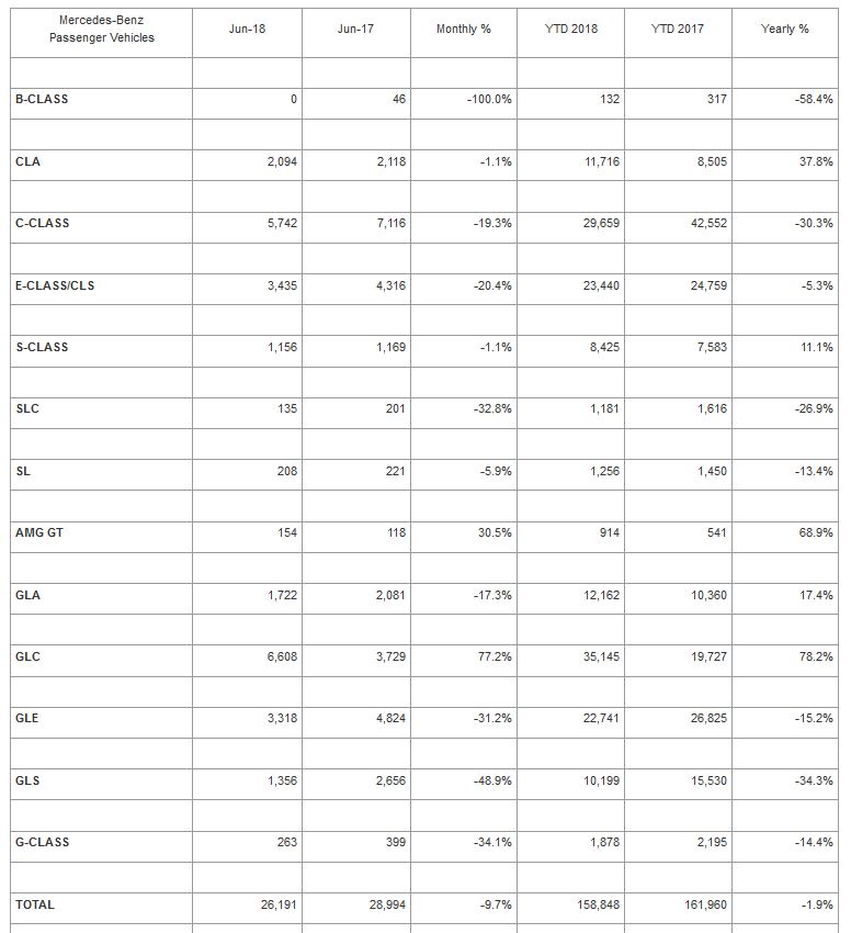 "June sales were mainly impacted by limited availability of our larger SUVs, the GLE and GLS, whose production was affected by a fire at a supplier facility in May," said Dietmar Exler, president and CEO of MBUSA.
