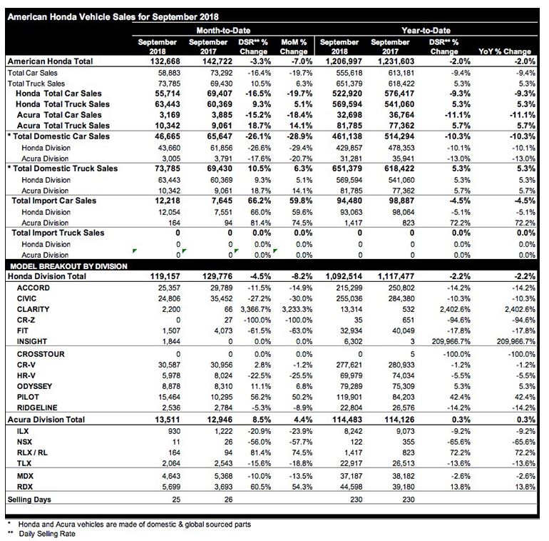 Honda trucks continued to build strong momentum in September, with record total sales and strong performances across the lineup. While car sales ceded some ground to trucks, the strength of Honda passenger cars has pushed them to the top of industry retail market share, despite tight supplies of key models.
