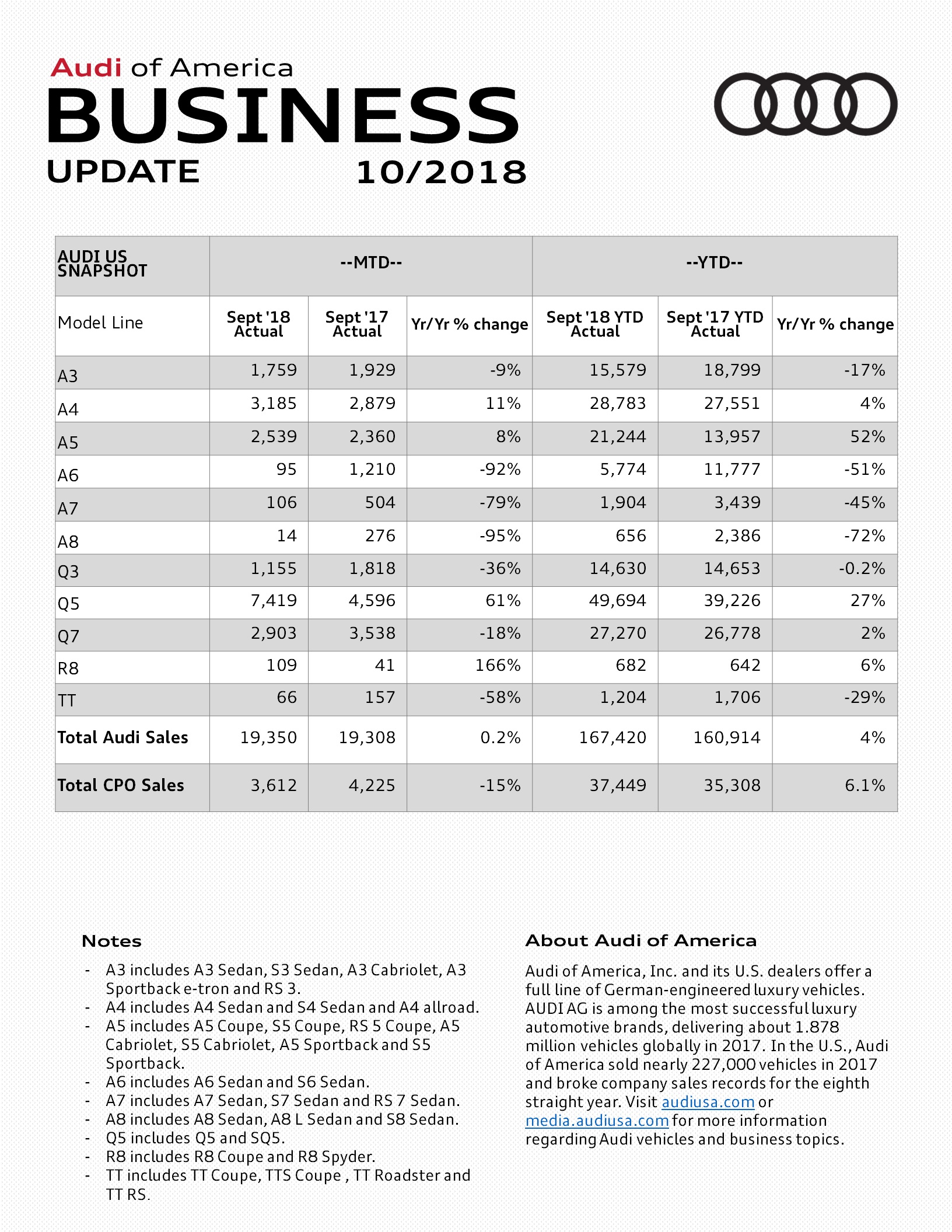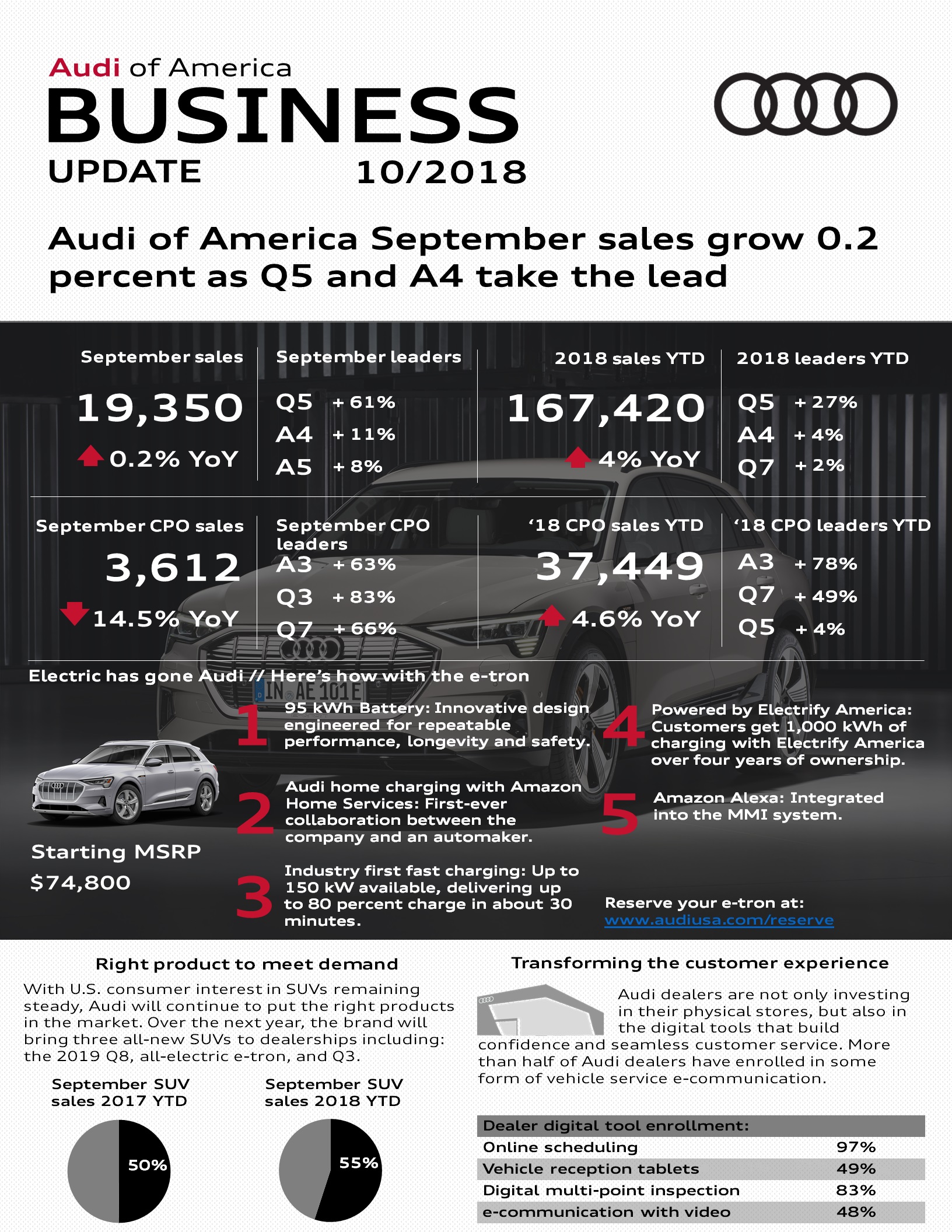 Audi of America September sales grow 0.2 percent as Q5 and A4 take the lead