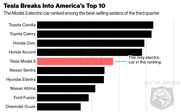 Automakers on Tuesday reported monthly and quarterly sales totals. For the three months that ended in September, Tesla delivered more Model 3s than all but four of the top sedans sold in the U.S., regardless of size or price...