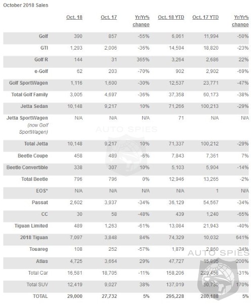 Volkswagen of America, Inc. (VWoA) today reported sales of 29,000 units in October, an increase of 4.6 percent over October 2017. With 295,228 units year-to-date, sales have now risen 5.4 percent this year to date. Led by Atlas and Tiguan, SUVs made up 43 percent of VWoA’s sales. The total of 12,419 SUVs sold last month marks a 38 percent increase over October 2017, when SUV sales made up just 33 percent of sales. Through October, the all-new Tiguan is the volume leader with 74,329 units sold year-to-date. Atlas sales reached 47,727 for the year.