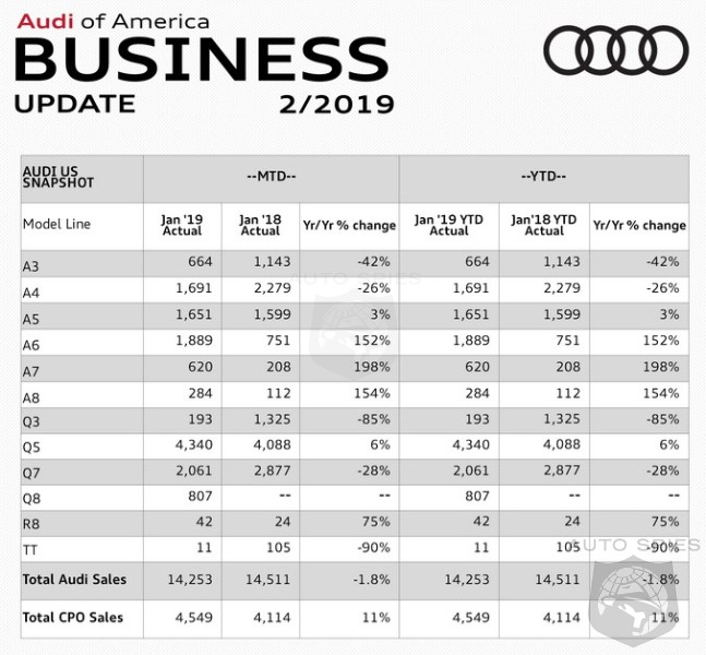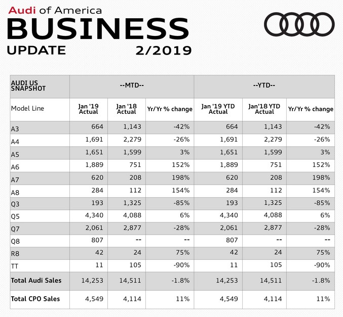 Audi January Sales Dipped 1.8%. The least in the last three months.