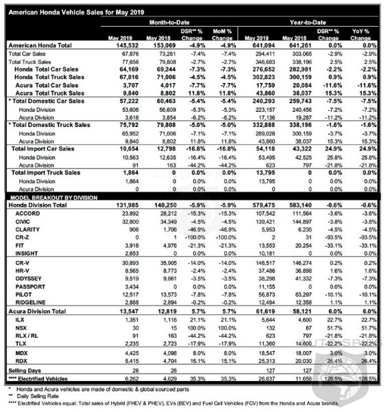 - Honda electrified vehicle sales topped 6,000 for the month, with Insight leading the way with 2,653 units sold.