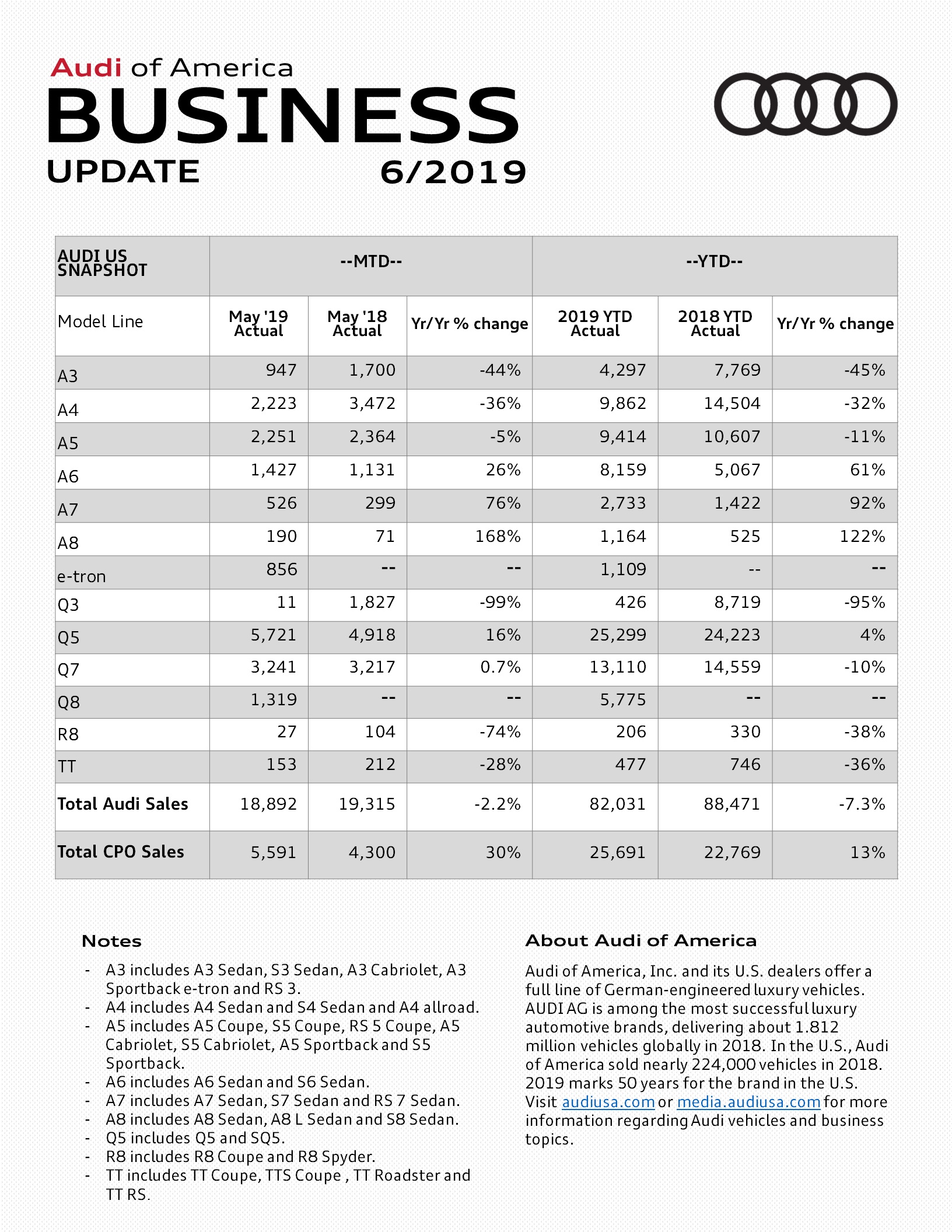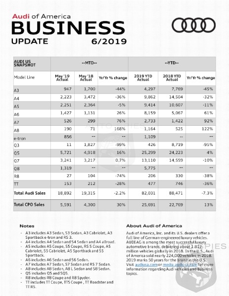 Audi seems to have somewhat recovered from a 21% sales slide in April with a 2.2% decline in May Sales.