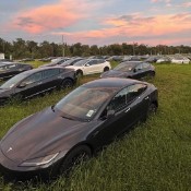 Hundreds of Teslas parked in an overgrown field might seem like a scene from a p...