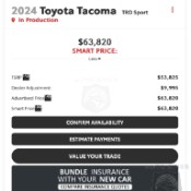 Buyers looking to get the 2024 Toyota Tacoma can expect a dealership markup of u...