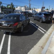 New angled back-in-only parking spots on Ventura Boulevard in Woodland Hills hav...