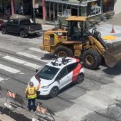 A driverless Chevrolet Bolt operated by GM’s Cruise robotaxi company was s...