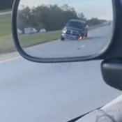 In a display of reckless defiance, a pickup truck driver was caught racing down...