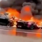 A fiery crash near Manchester, England has left two people injured after a Lambo...