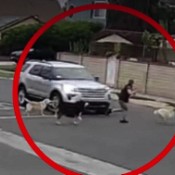 Shocking video shows the moments leading up to a woman walking three dogs gettin...