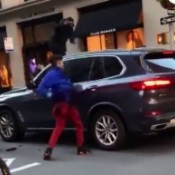 A pack of young bicyclists attacked a BMW in broad daylight in Manhattan, terror...