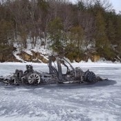 A Tesla Model X was found burning to almost nothing on a frozen lake in Vermont ...