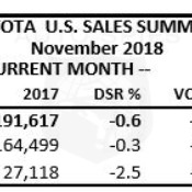 Toyota Motor North America (TMNA) today reported November 2018 sales of 190,423...