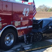 A Tesla Model S traveling at 65 mph crashed into a stationary fire truck at Int...