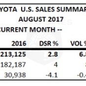 Toyota Motor North America (TMNA) Inc., today reported August 2017 sales of 227...