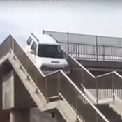 Bizarre footage has emerged of a man in China steering his car with his foot whi...