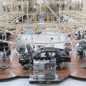 In old school auto assembly plants, cars inch through work stations as people pl...